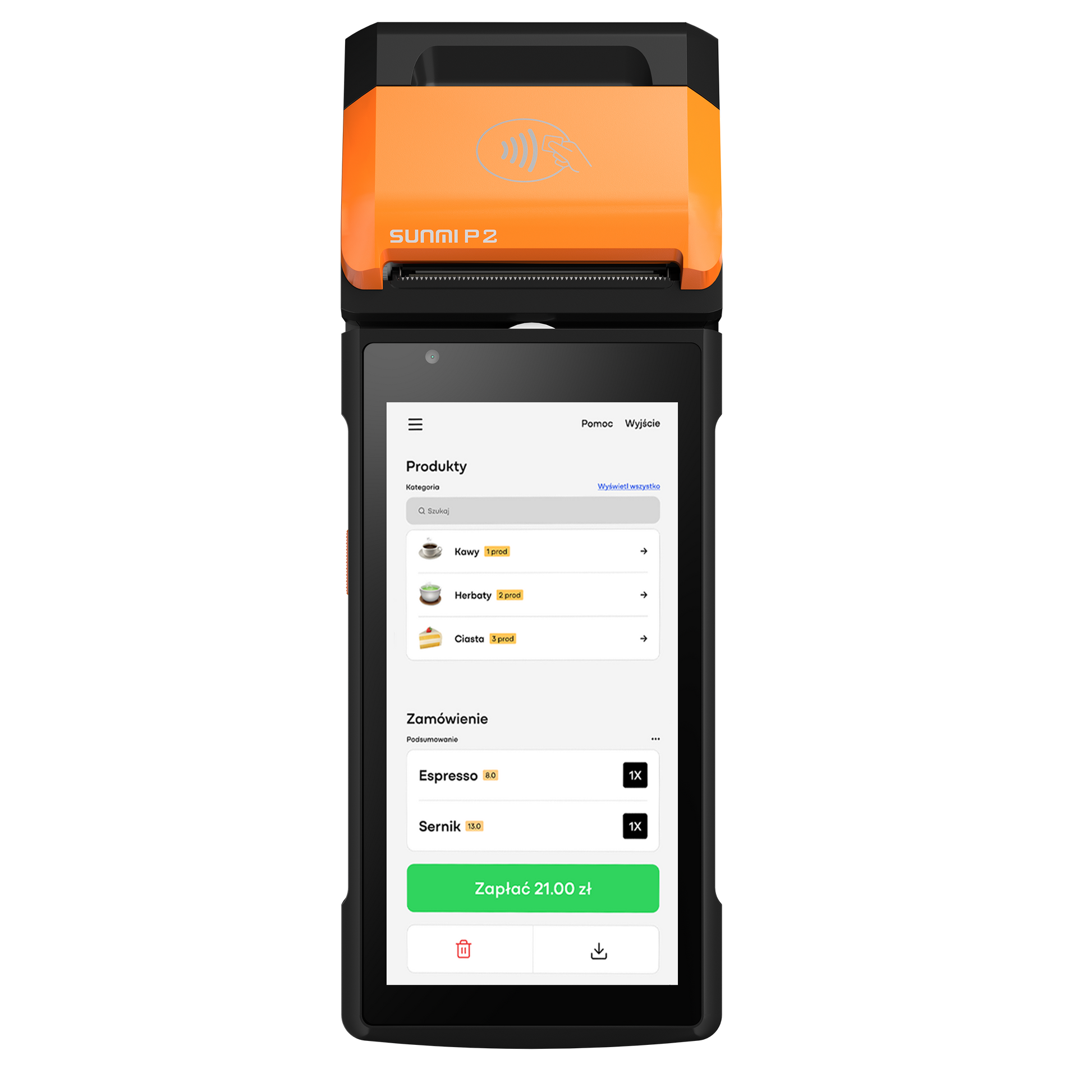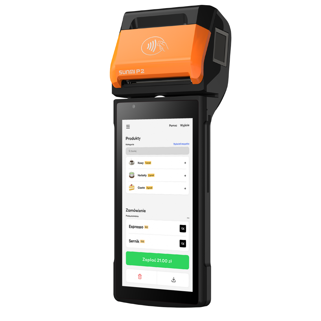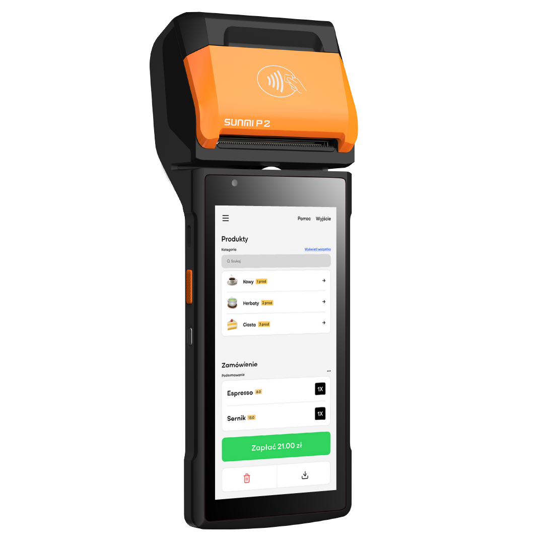Sunmi P2 to wszechstronne urządzenie wszystko w jednym, które łączy funkcje terminala płatniczego, kasy fiskalnej oraz zaawansowanego systemu sprzedaży. Zaprojektowane z myślą o małych i dużych firmach, jest idealnym rozwiązaniem zarówno do użytku stacjonarnego, jak i mobilnego. Niezastąpione w lokalach gastronomicznych, takich jak foodtrucki, kawiarnie, bistro czy restauracje.