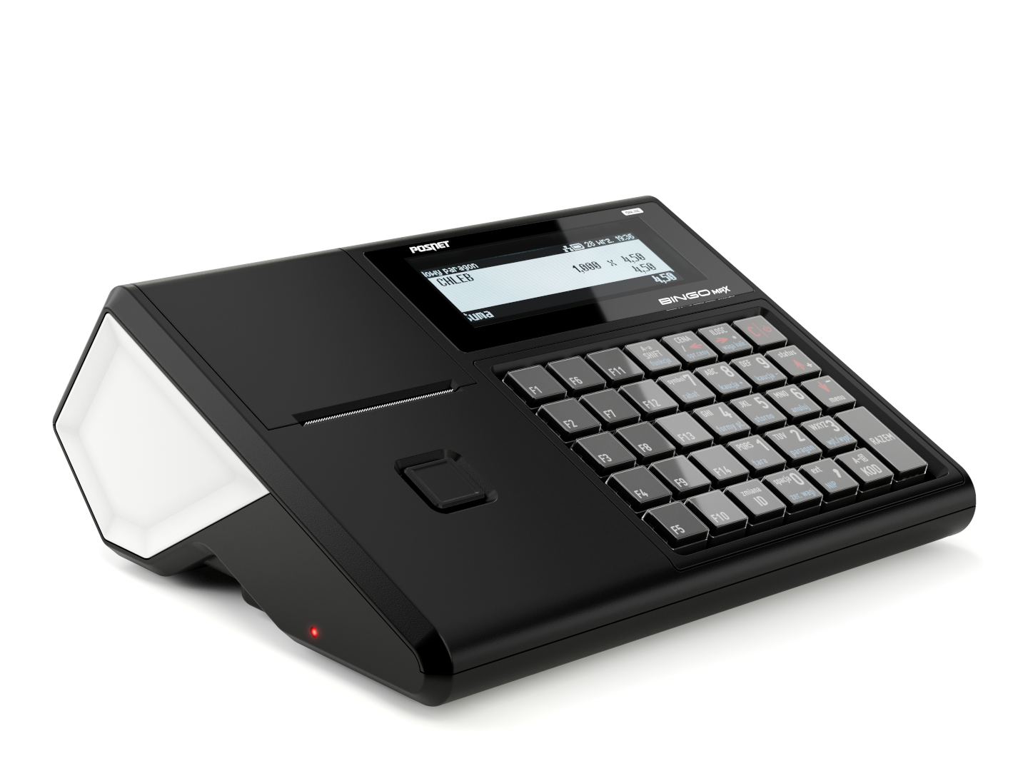 Kasa Bingo Max ma nowoczesną budowę, nieduże rozmiary (249 x 99 x 207 mm), intuicyjną i wygodną klawiaturę, co gwarantuje komfort w użytkowaniu urządzenia.